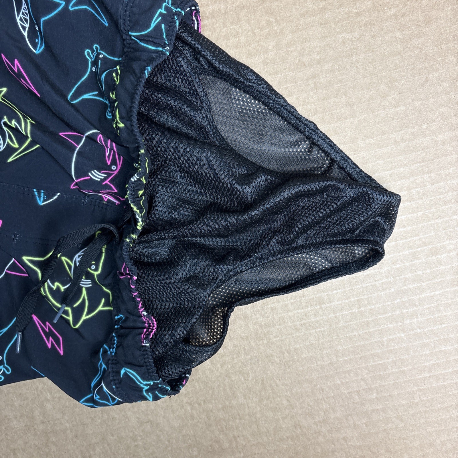 как выглядит Hurley Boys 5 6 Swim Trunks Black Neon Sharks Built In Brief Mesh Board Shorts фото