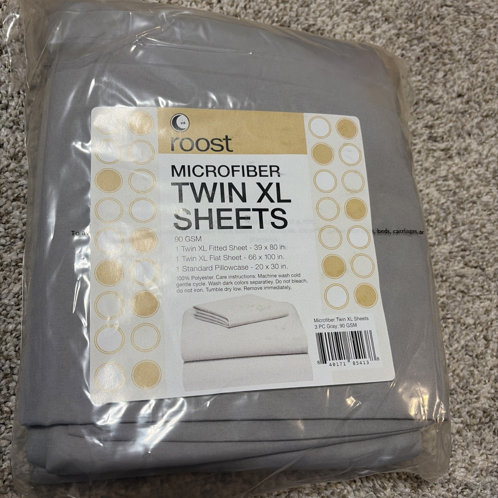 NEW 4-pack Fitted Flat Sheets Twin/Twin XL Dorm Bed Gray Microfiber NIP