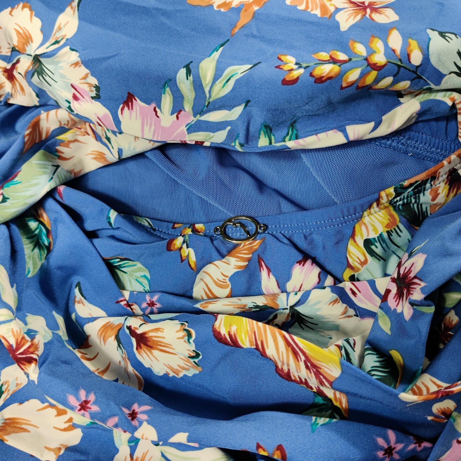 как выглядит Jantzen Swimsuit Womens 10 Blue Floral One Piece Padded Tummy Control Wrap фото