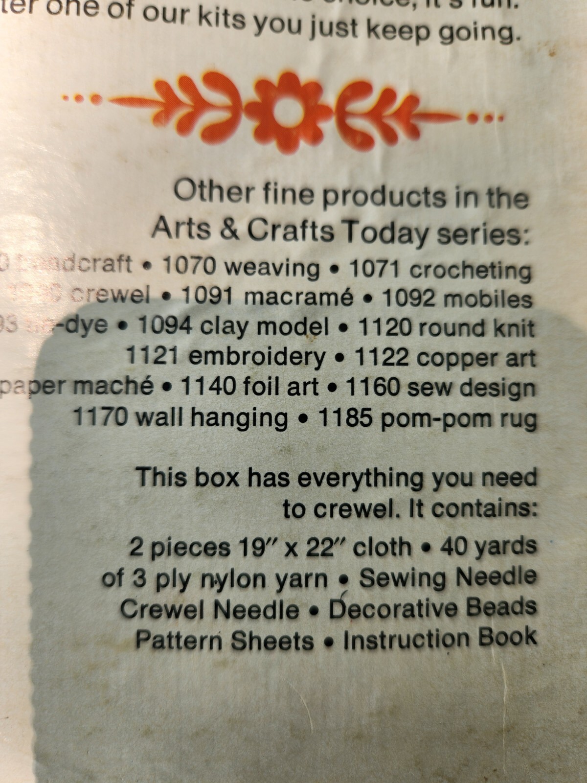 Vintage Hasbro Crewel Craft Kit COMPLETE 1971 Pillow Or Purse Art Crafts Today