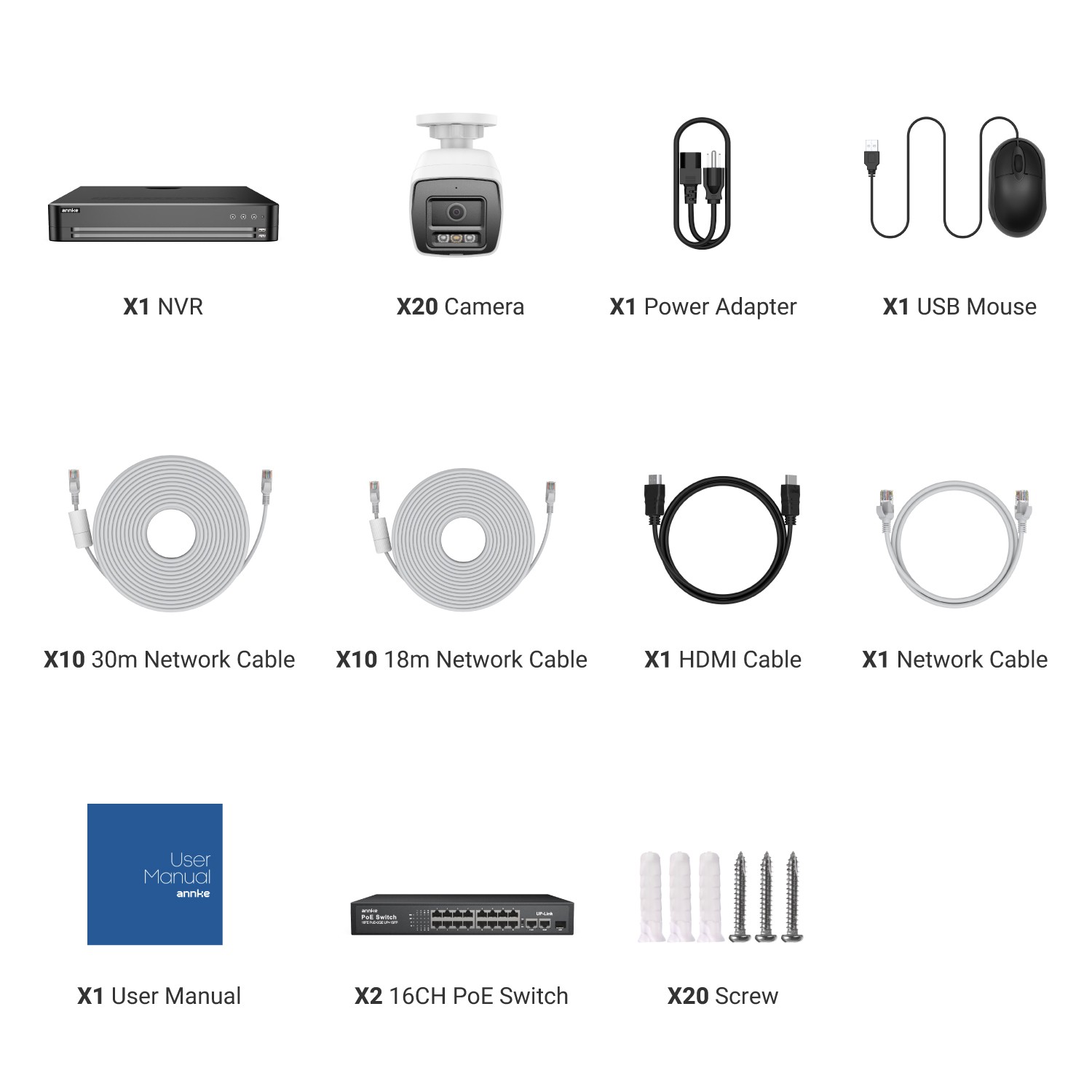 Power over Ethernet (PoE), Wide Angle, Built in Microphone, Audio Recording, Smart Person/Vehicle Detection, Instant Alert, Multiple Language Support, Night Vision, Outdoor/Weatherproof, Plug in, Waterproof, Wall Mounted, Color Night Vision |
