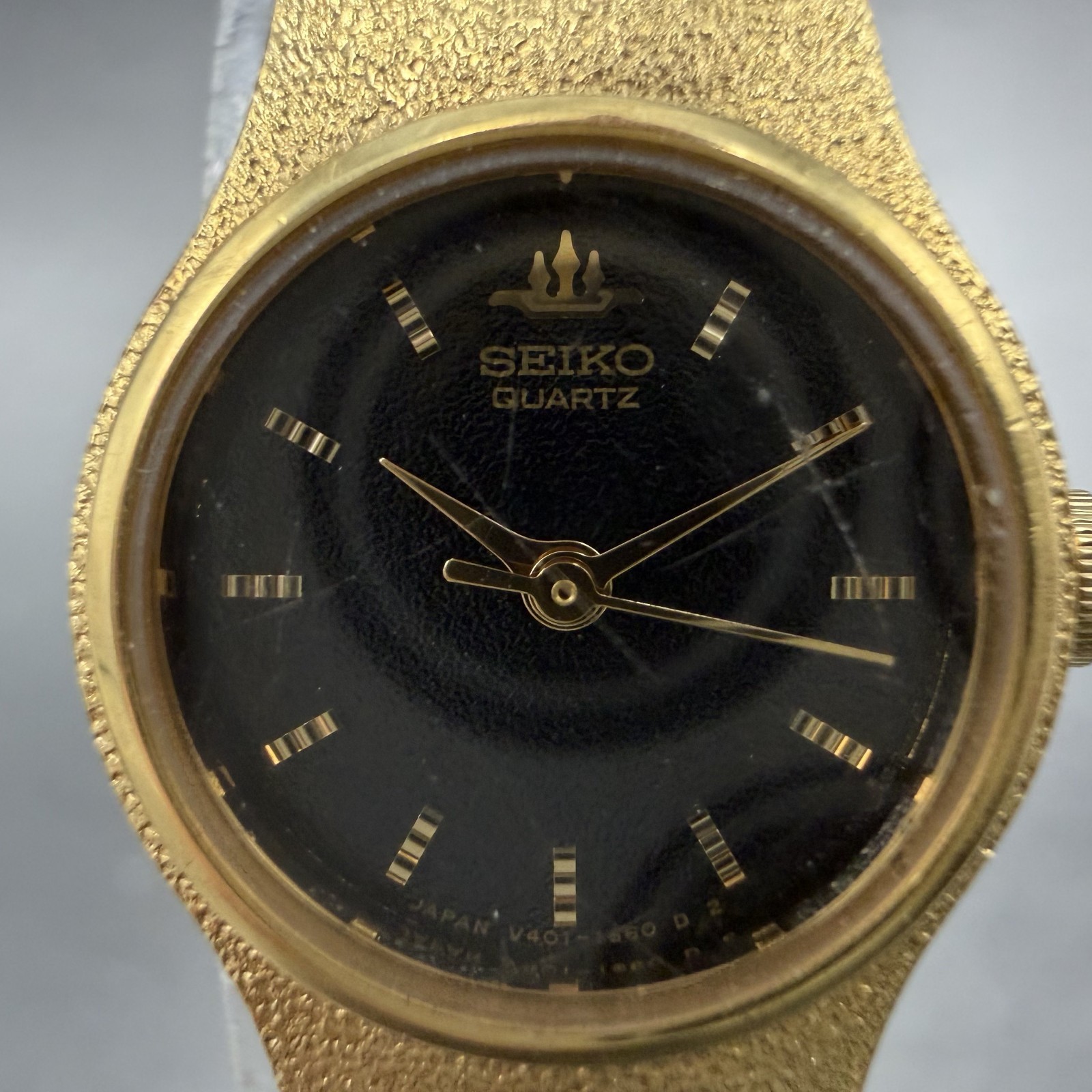 как выглядит Seiko Watch Women 18mm Black Dial Gold Tone Round V401-0250 New Battery фото