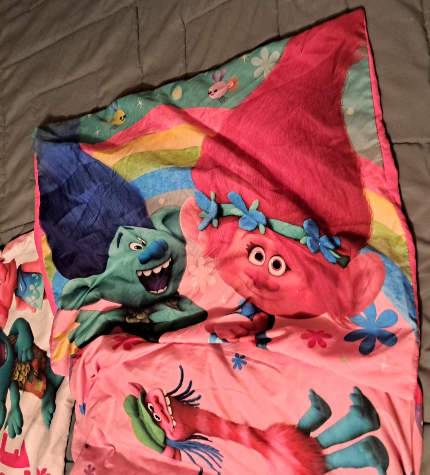 как выглядит Dreamworks Trolls Show Me a Smile Twin Bed 4 Set-Flat Fitted Sham Pillowcase фото