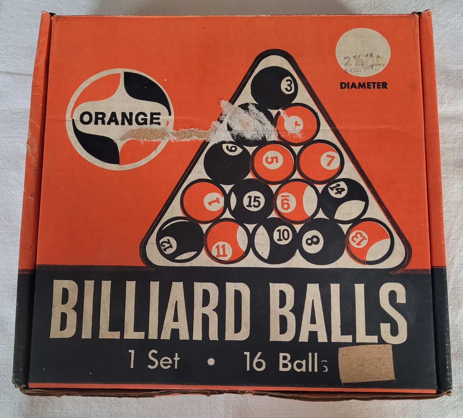 Vintage Billiards Pool Ball Set 16 Ct. 2 1/4 6 Oz. Original Box Orange Products