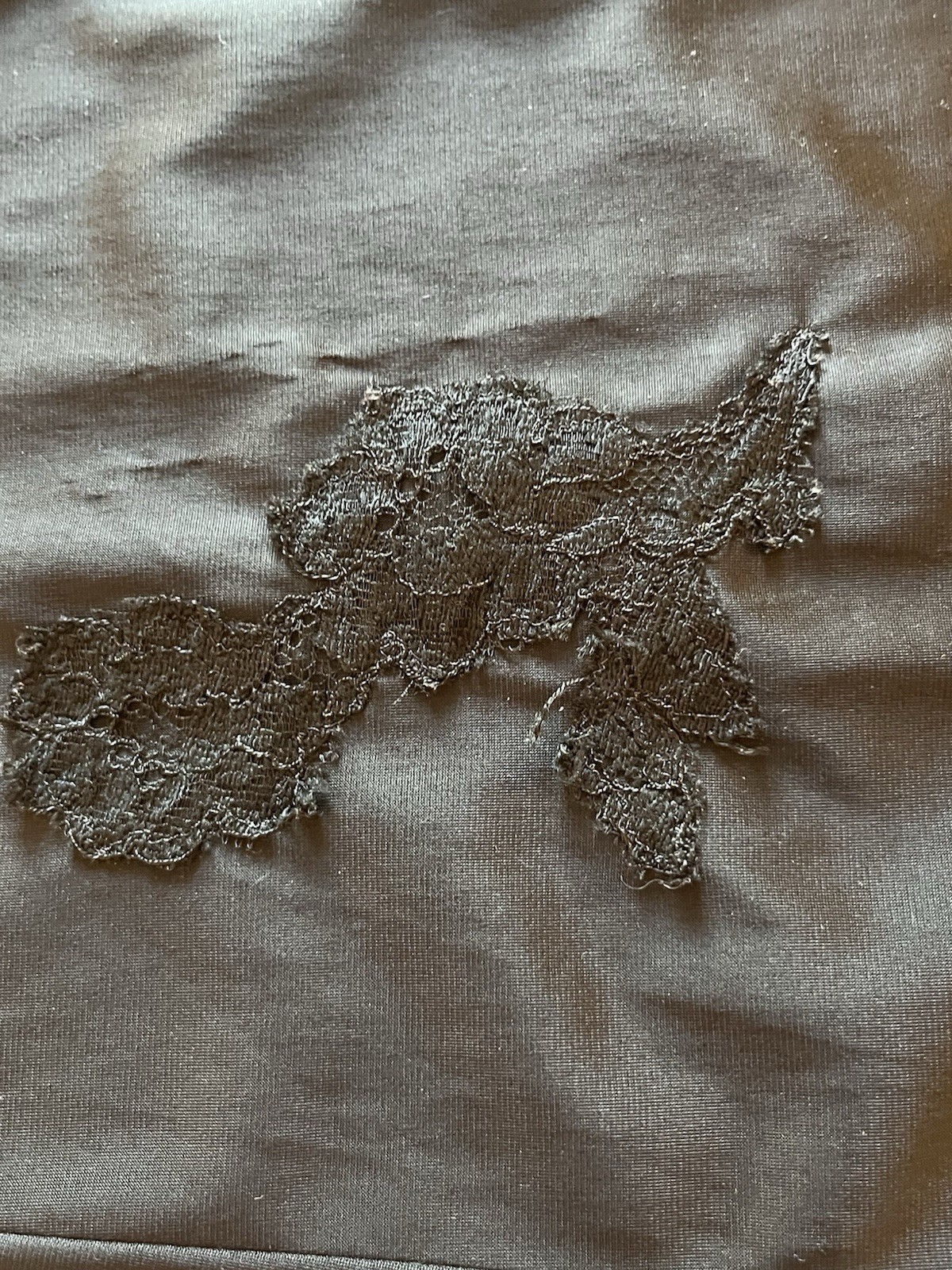 как выглядит Shadowline Sz32 Black Full Slip w/ Appliqu  Lace, Nylon, VTG фото