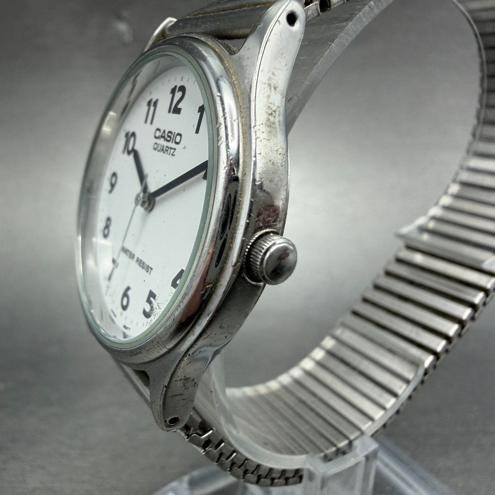 как выглядит Casio Watch Men 32mm White Dial Silver Tone Round MQ-410 New Battery фото