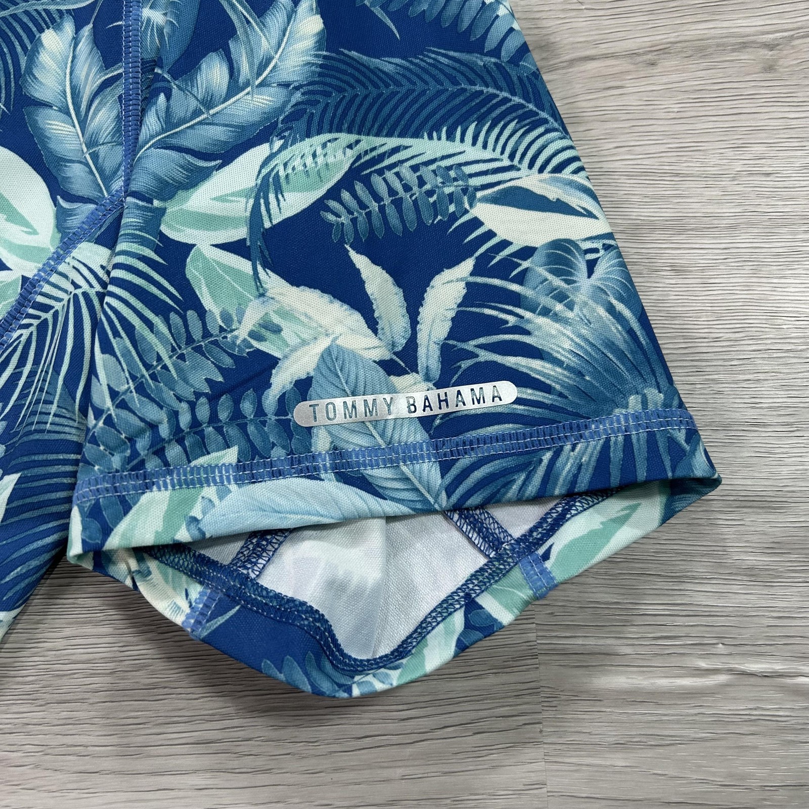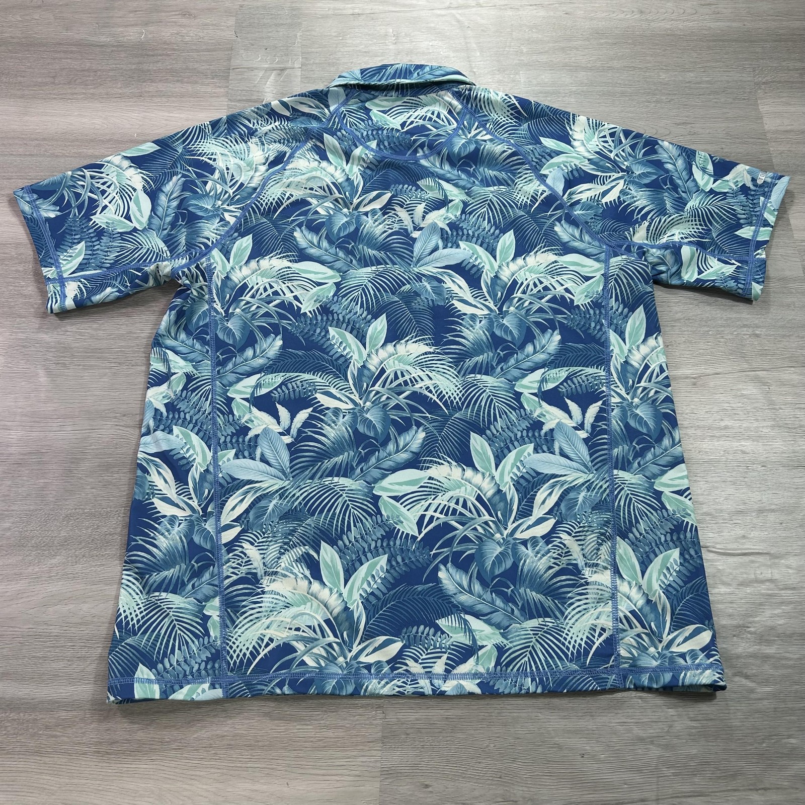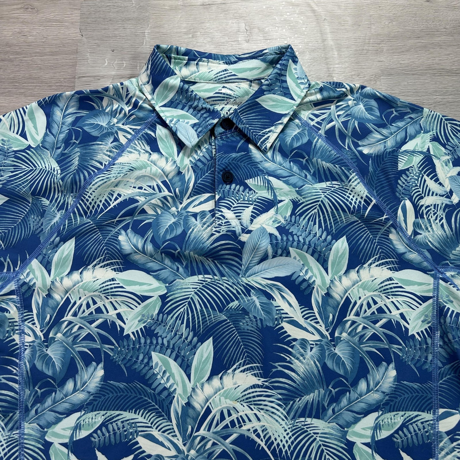 Tommy Bahama Polo Shirt Mens Medium Blue IslandZone Tropical UPF 30 Stretch