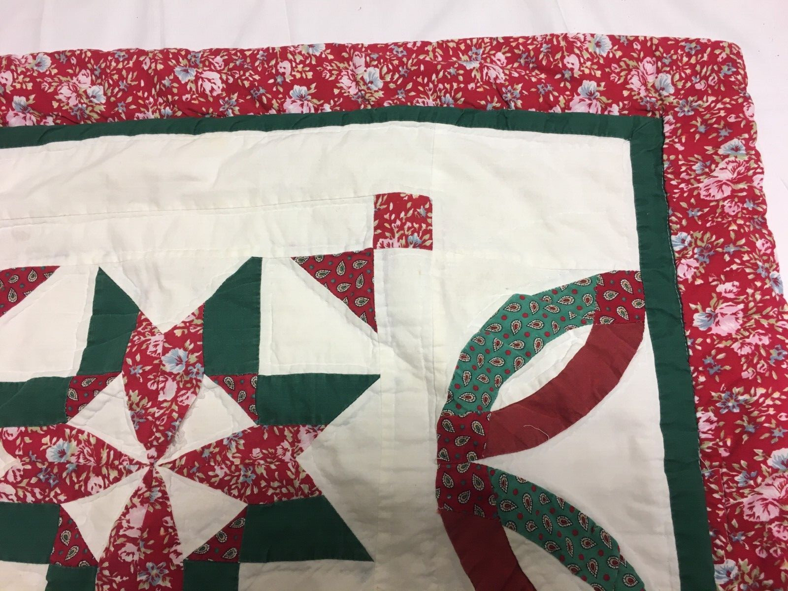 Handmade Vintage Quilted Floral Pillow Sham 28.5 x 23.5
