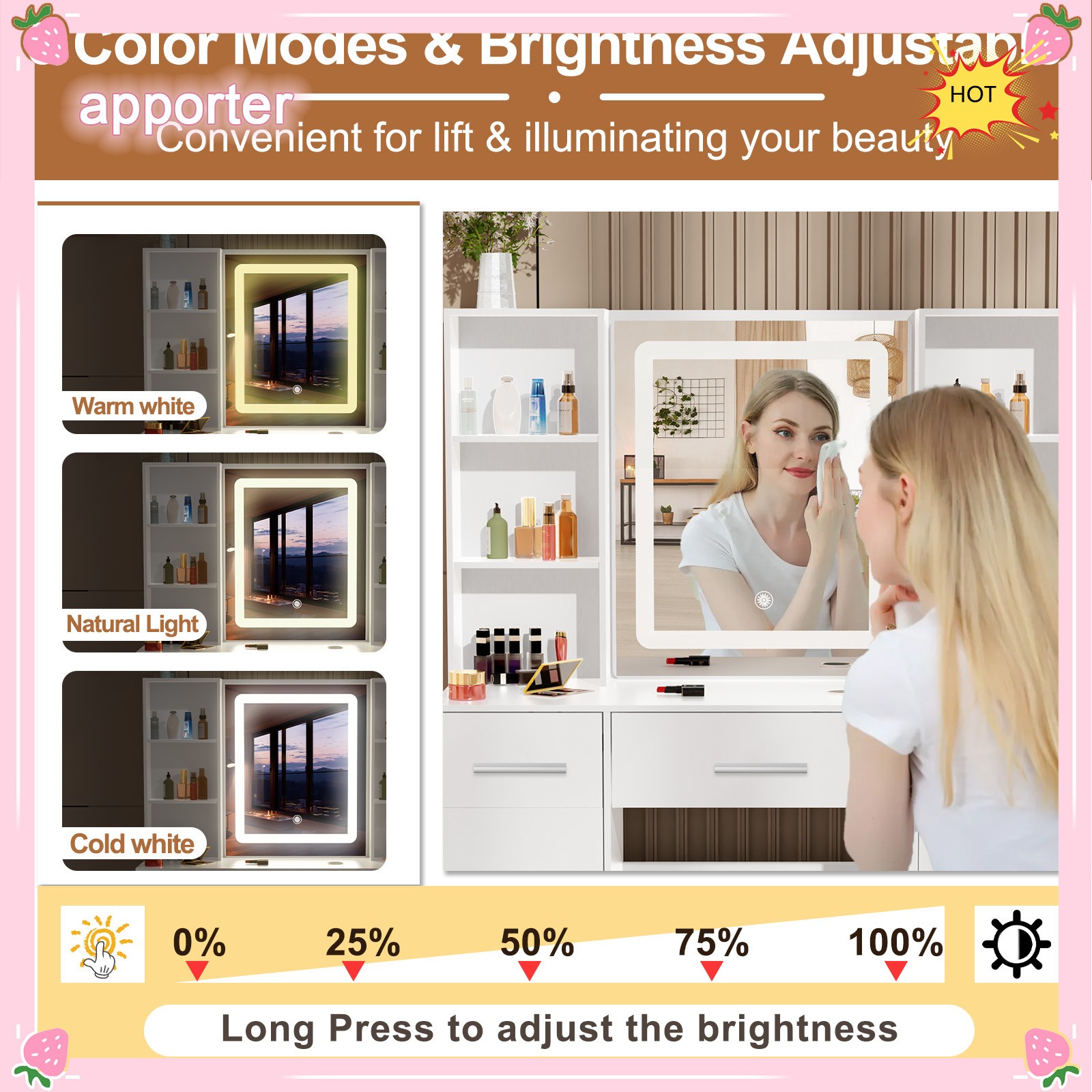 LED Vanity Set Led Strips Lights Makeup Desk Mirror Dressing Table Dresser NEW