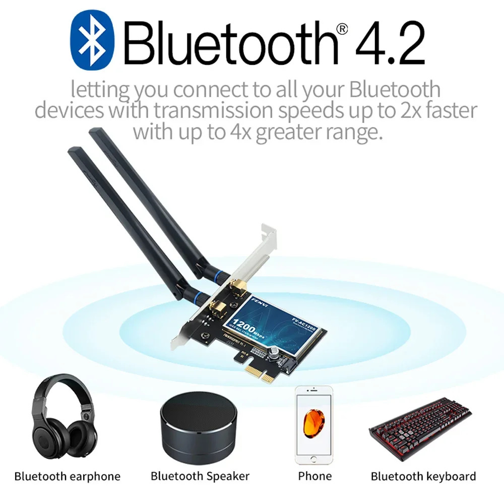 WiFi 5 PCI-E Wireless Adapter Bluetooth 4.0 for Intel 802.11ac Network Card