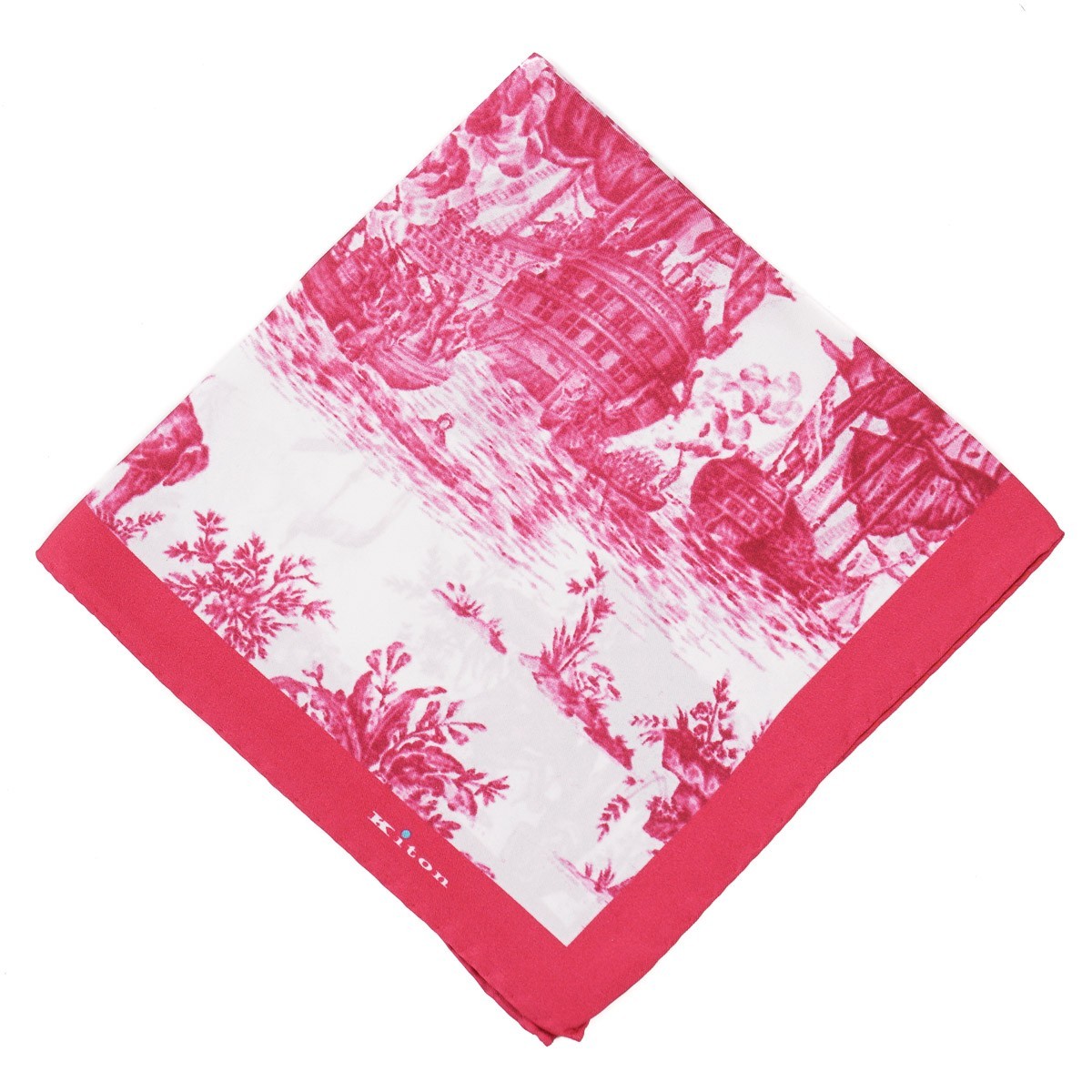 Kiton Dark Pink Historic Naval Ship Battle Print Silk Pocket Square New
