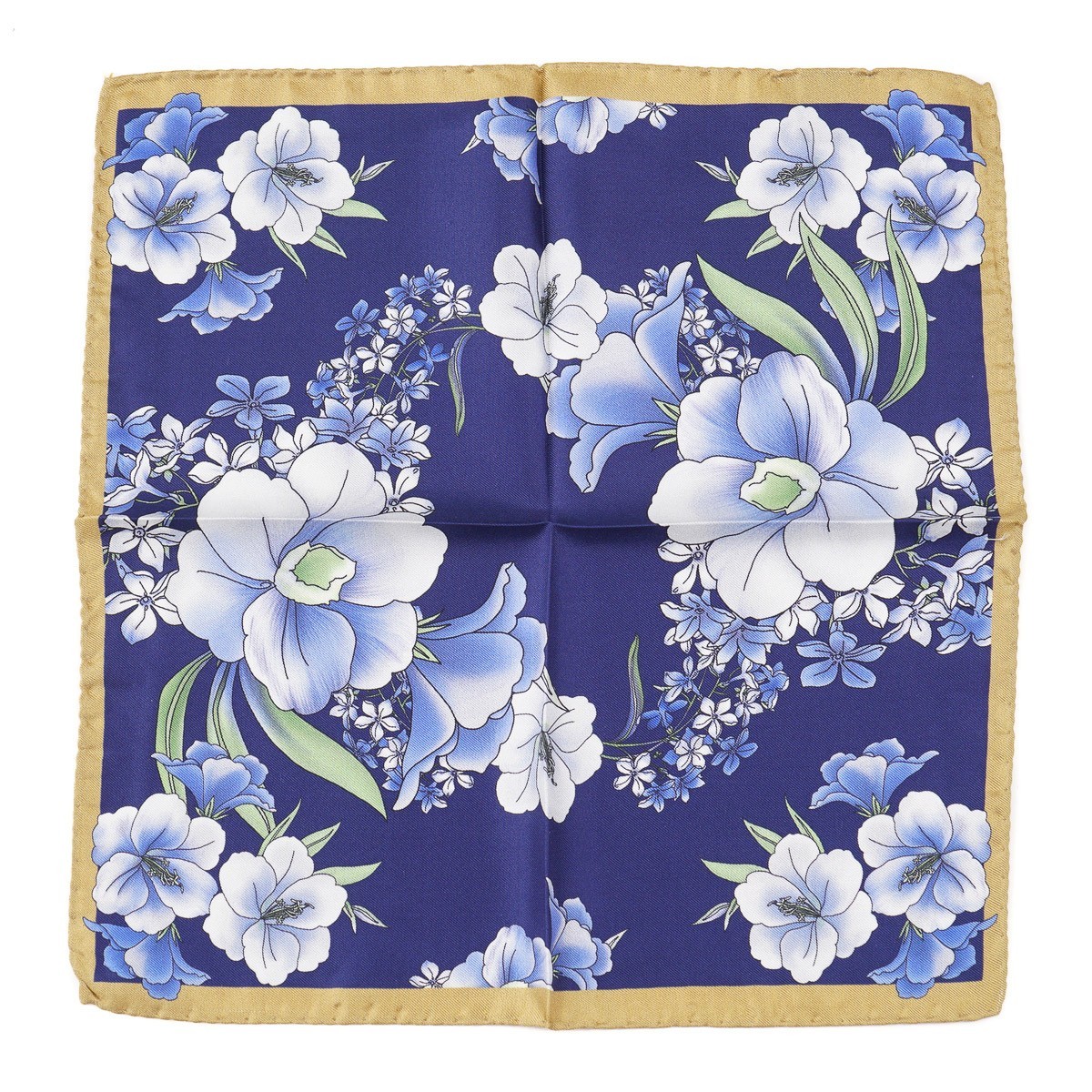 Battisti Napoli Blue Intricate Floral Print Silk Pocket Square New
