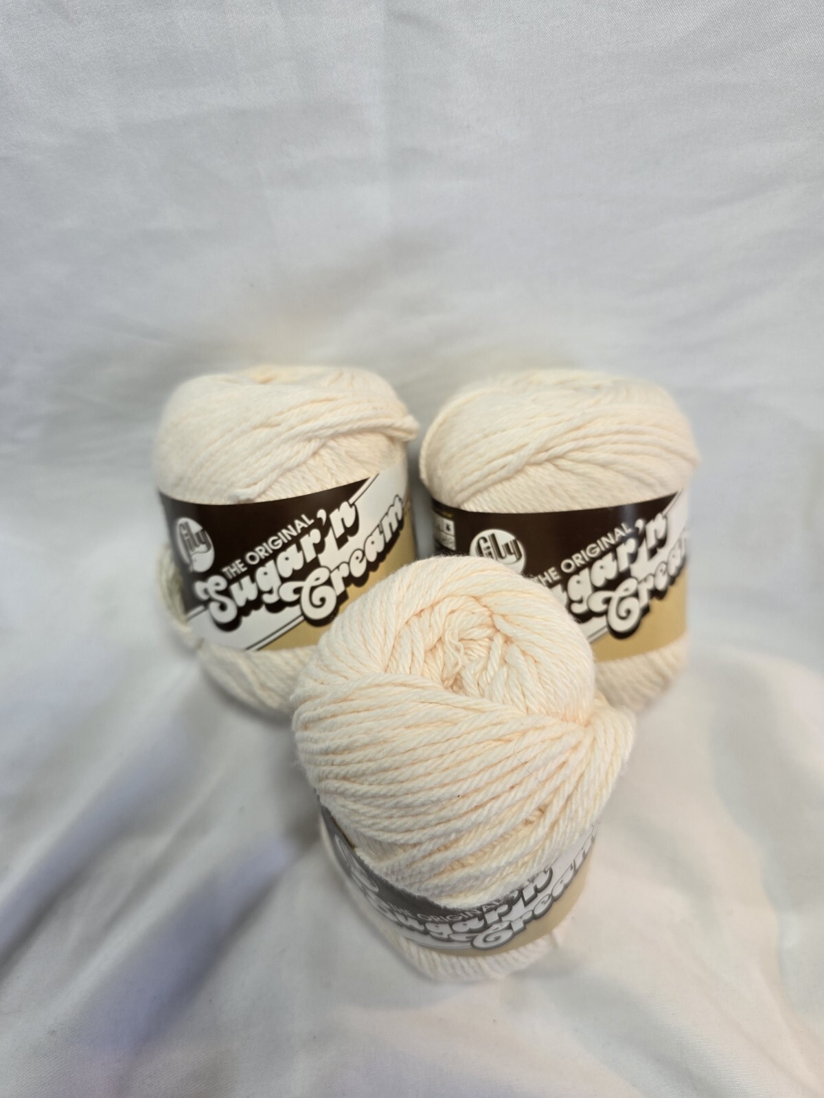 как выглядит 3 Skein Lily Sugar n Cream Yarn Ecru Super Size Knitting Crochet Cotton 18004 фото