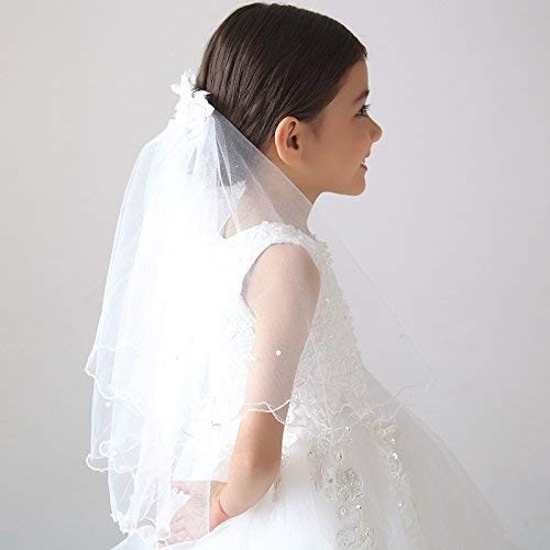 Girl Two Layers Tulle First Communion Veils Pearls Wedding Prom Party Baptism