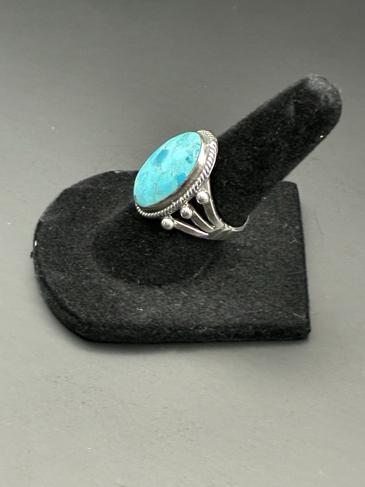 Sterling Silver 925 Turquoise Ring Size 6 Oval Cabochon Southwestern Style