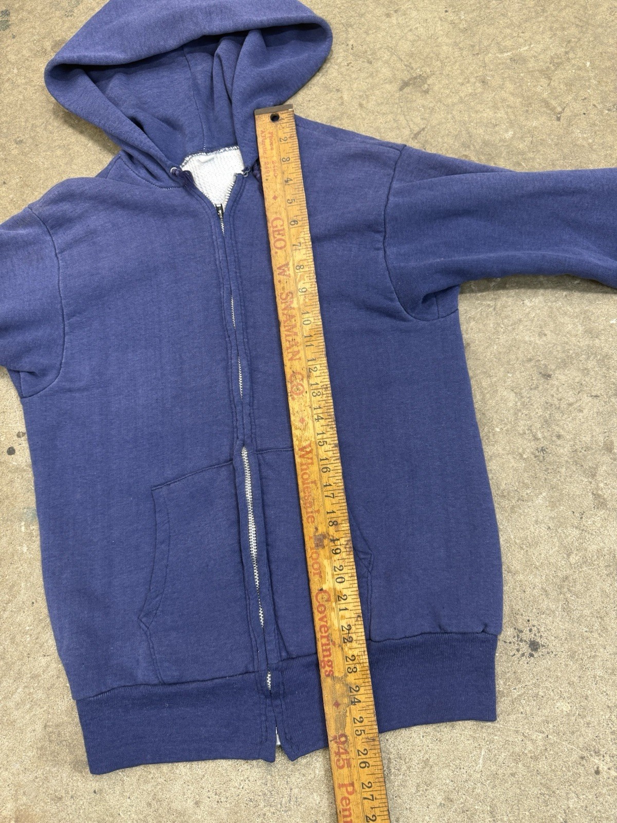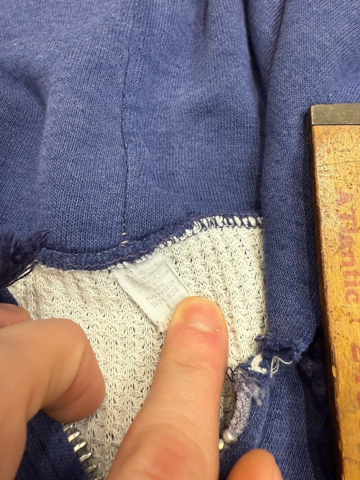 как выглядит Vintage 60s Double Face Waffle Knit Faded Cotton Zip Up Hoodie Sweatshirt фото
