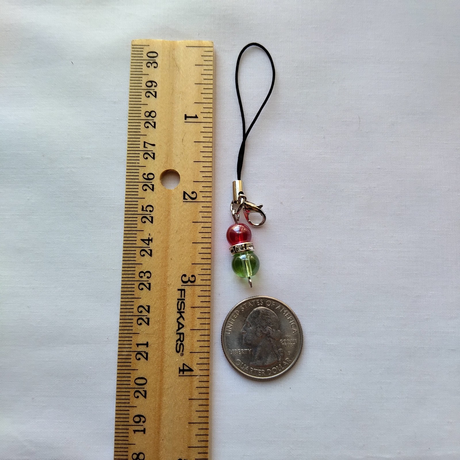 Red Green Bead Phone Charm Dangle Lanyard Hang Pendant Chain Car Decor Handmade