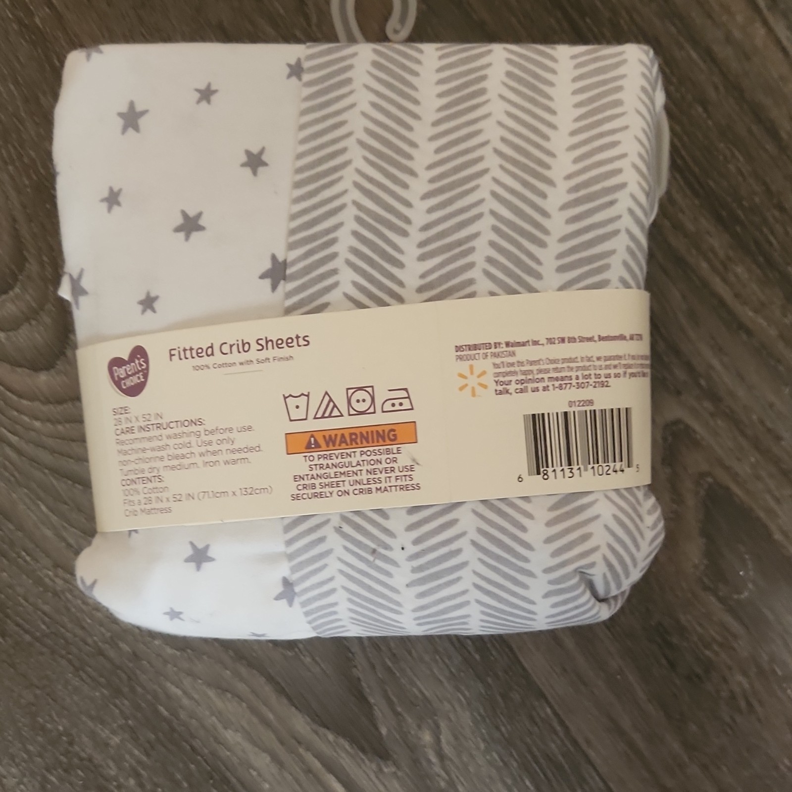 Parent's Choice Fitted Crib Sheets 2-Pack Cotton White Gray Stars Chevron