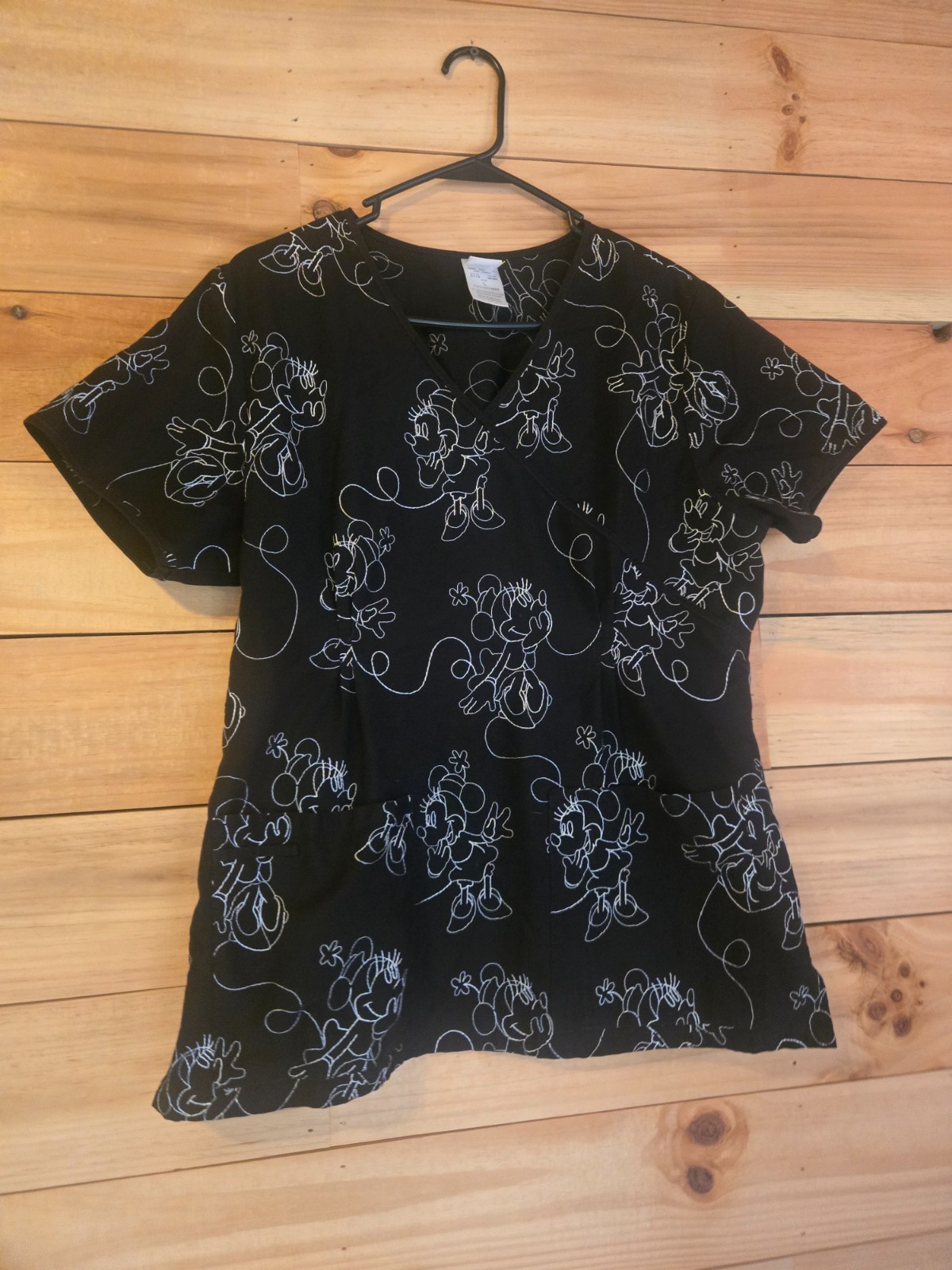 Disney Women's Sz L Black Scrub Top Minnie Mouse Short Sleeve Top Medical Nurse