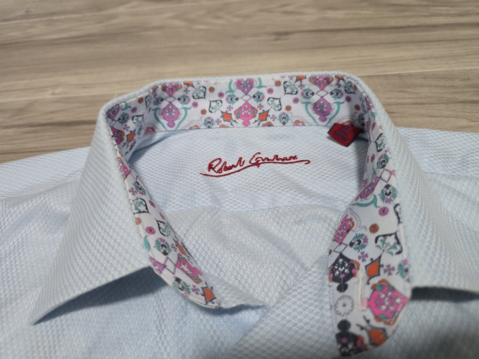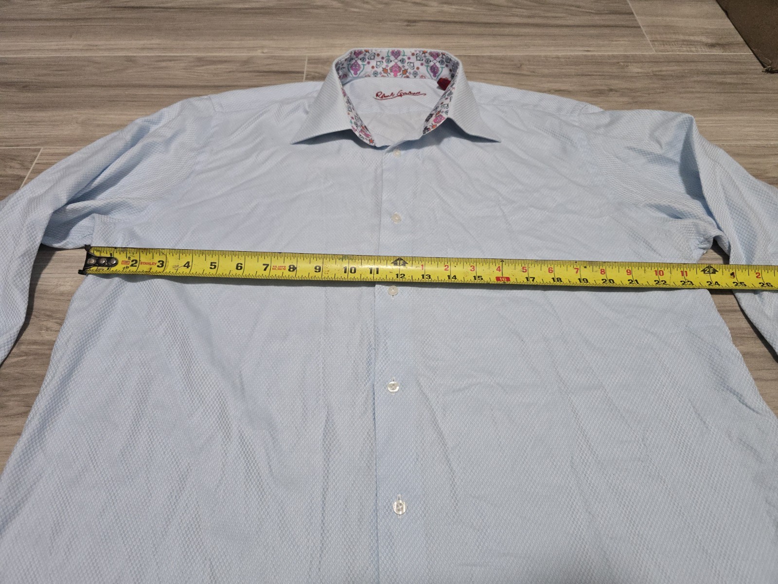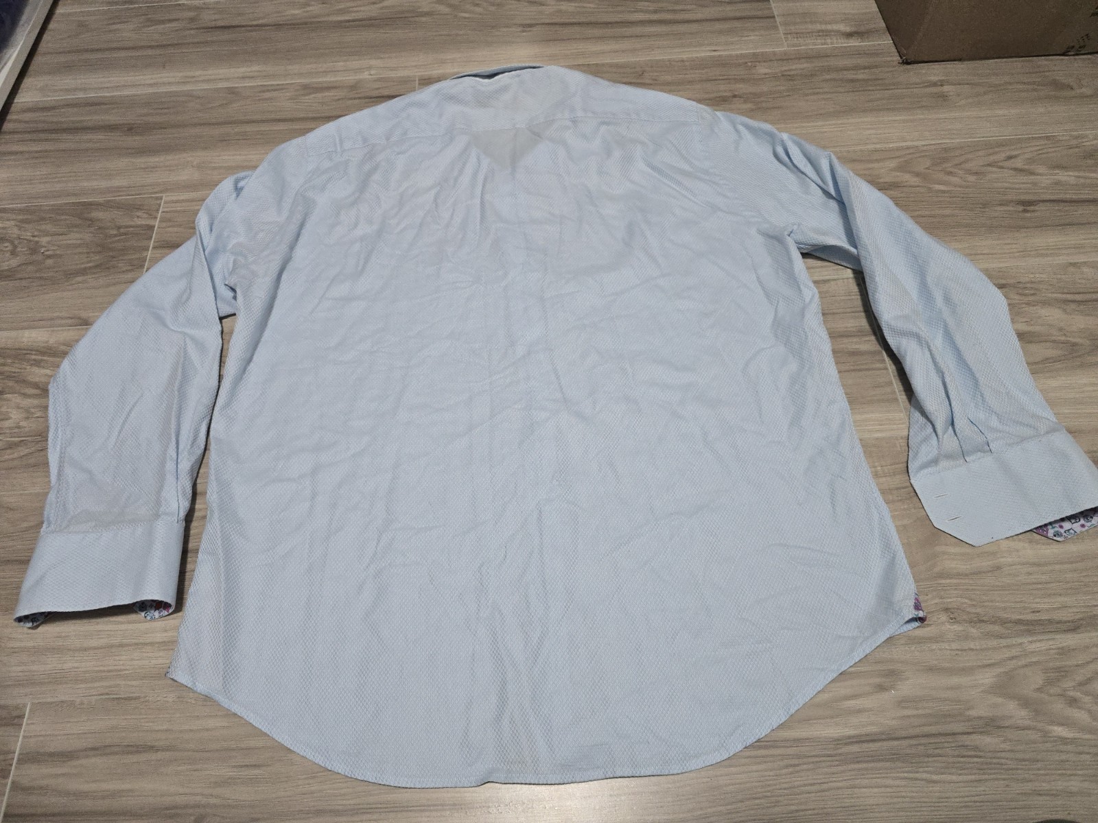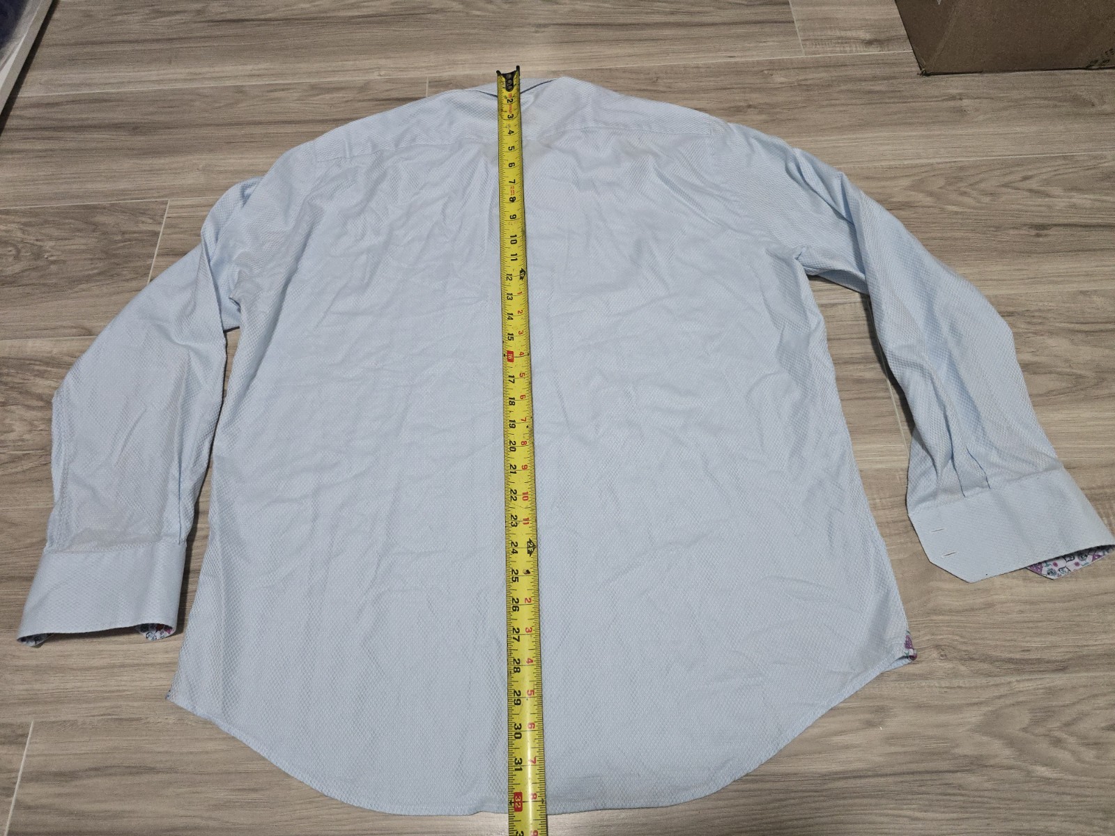 как выглядит Robert Graham Mens Button Shirt Flip Cuff Cotton Blue 43 17 Large XL фото