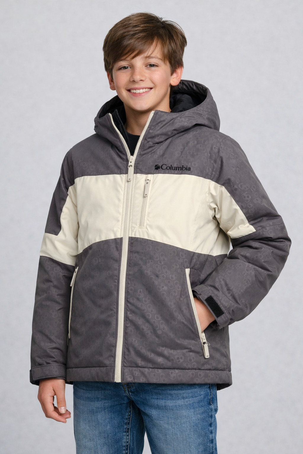 Columbia Convert Youth 14/16 Winter Ski Jacket Gray Fleece Lined Waterproof Coat