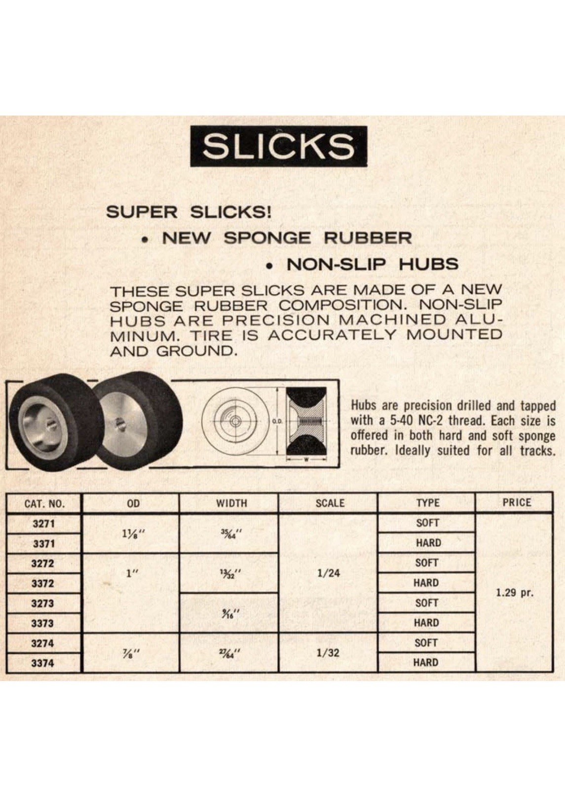 Cox NOS 3272 Soft Super Slicks with Aluminum Wheels 1 Pair 1/24 Slot Cars