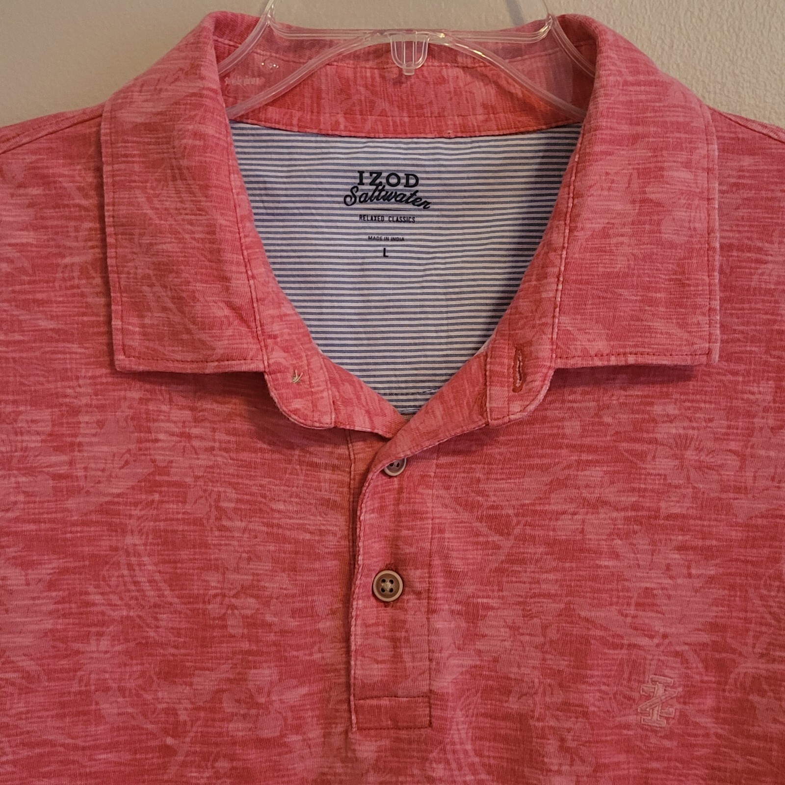 как выглядит IZOD Saltwater Relaxed Classics Polo Pink Shirt Button Up Casual Mens Lg, Golf фото