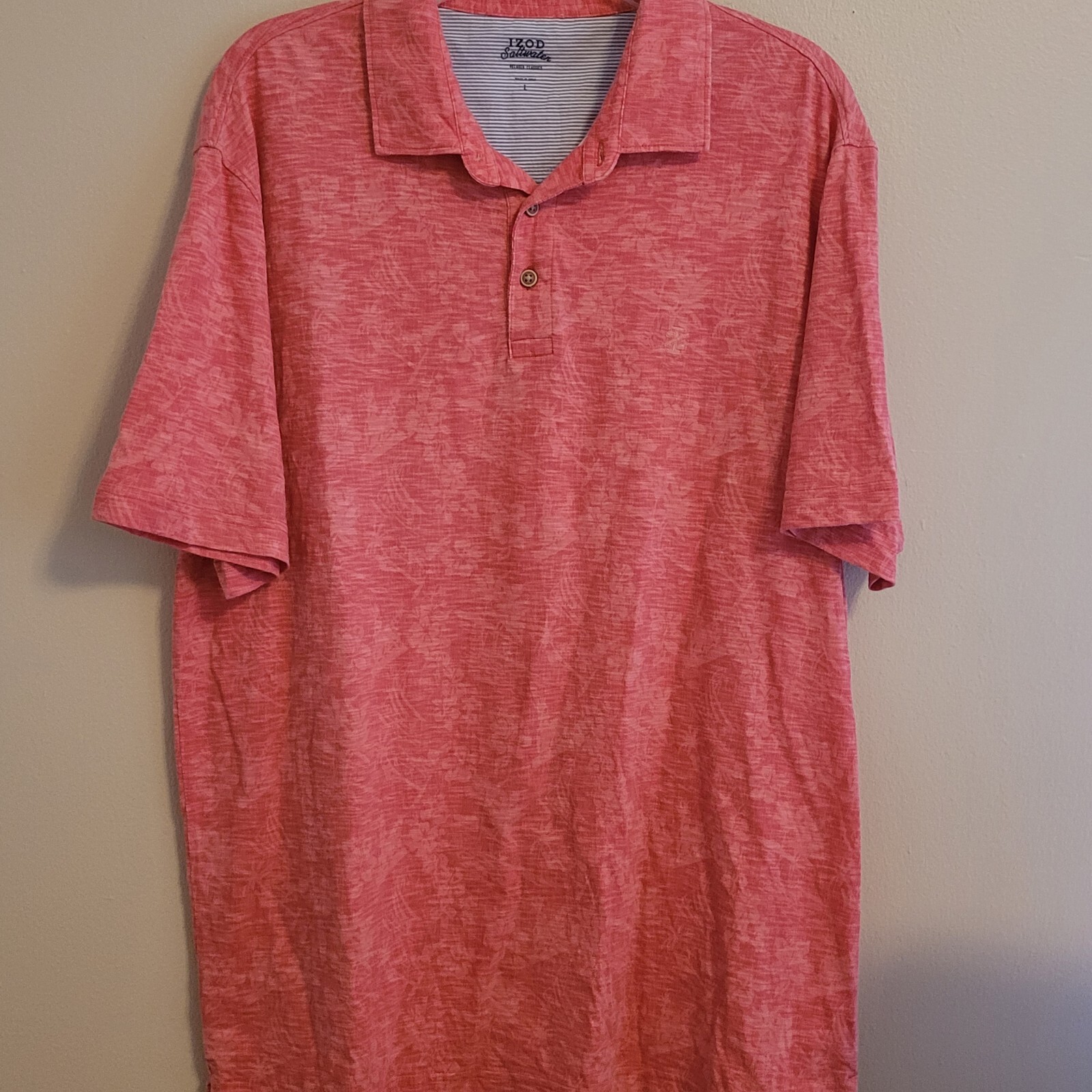 IZOD Saltwater Relaxed Classics Polo Pink Shirt Button Up Casual Mens Lg, Golf