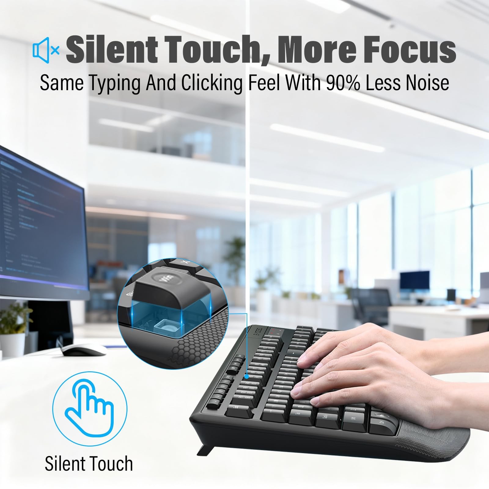 Wireless Keyboard and Mouse Combo,Silent Soft Touch Quiet Keyboard Less Noise...