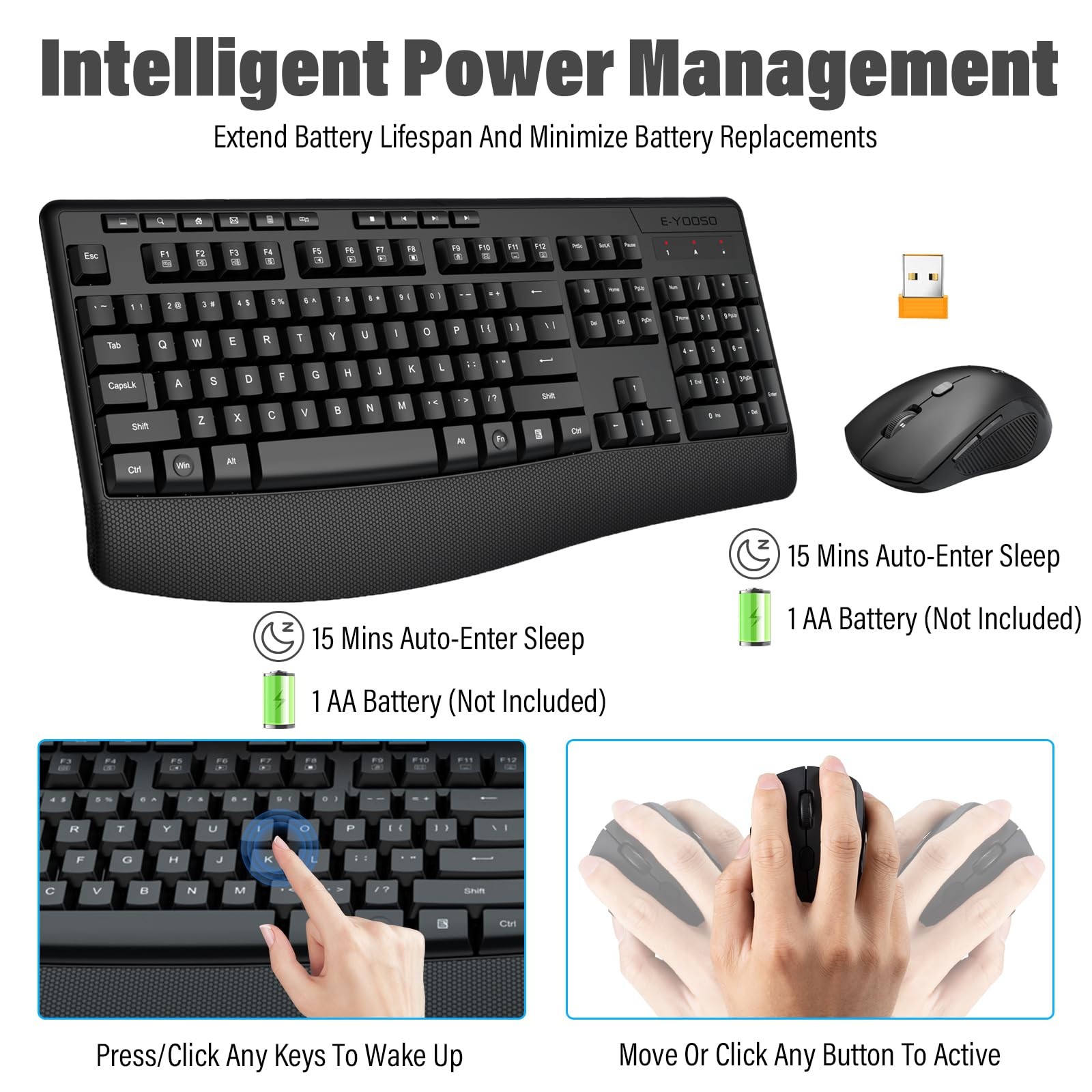 как выглядит Wireless Keyboard and Mouse Combo,Silent Soft Touch Quiet Keyboard Less Noise... фото