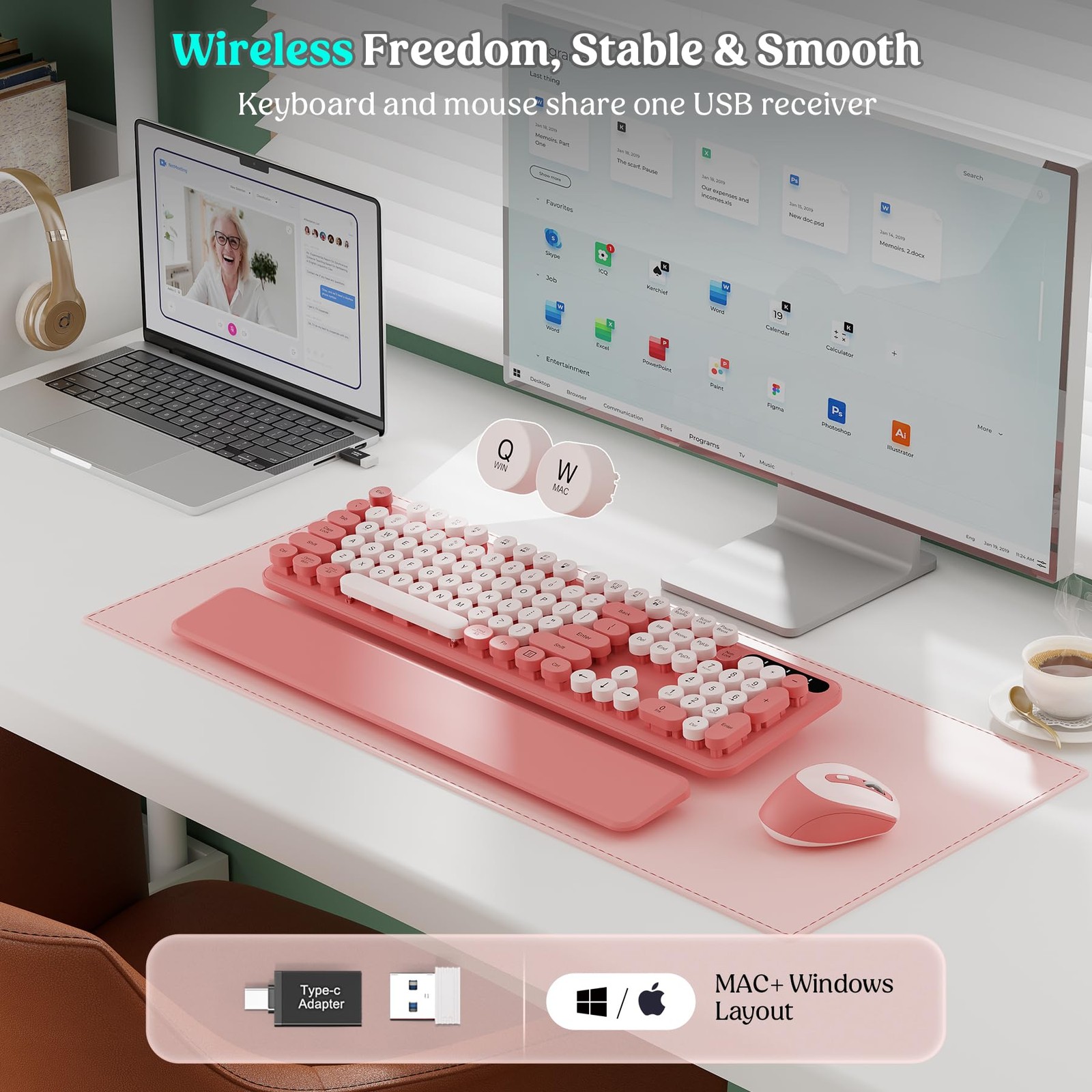Wireless Keyboard and Mouse Combo, Typewriter Keyboard with Detachable Wrist ...