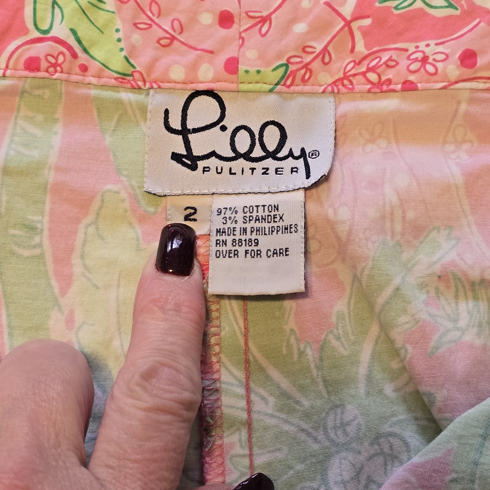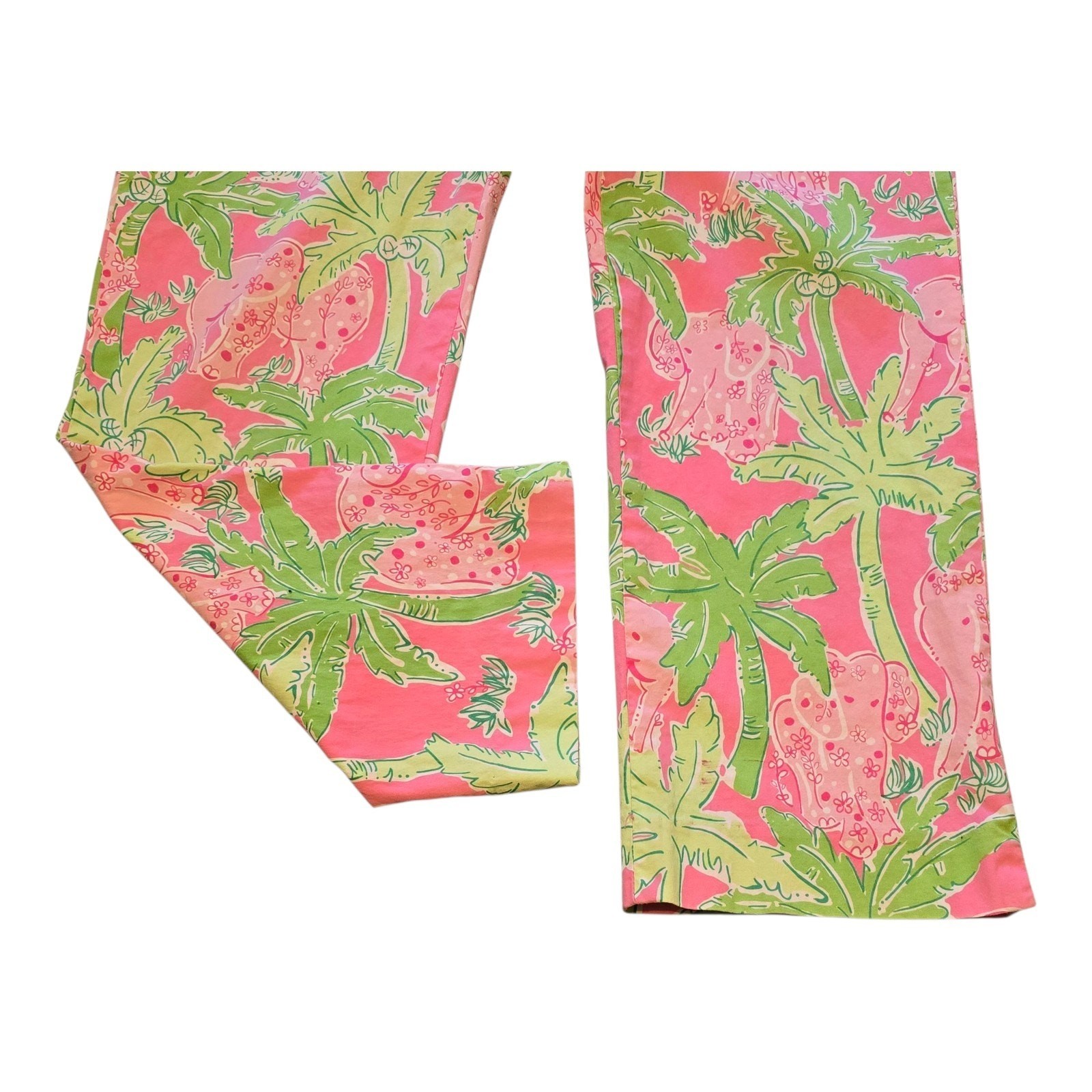 Lilly Pulitzer Capri Womens 2 Pink Elephant Tropical Print Vacation Resortwear