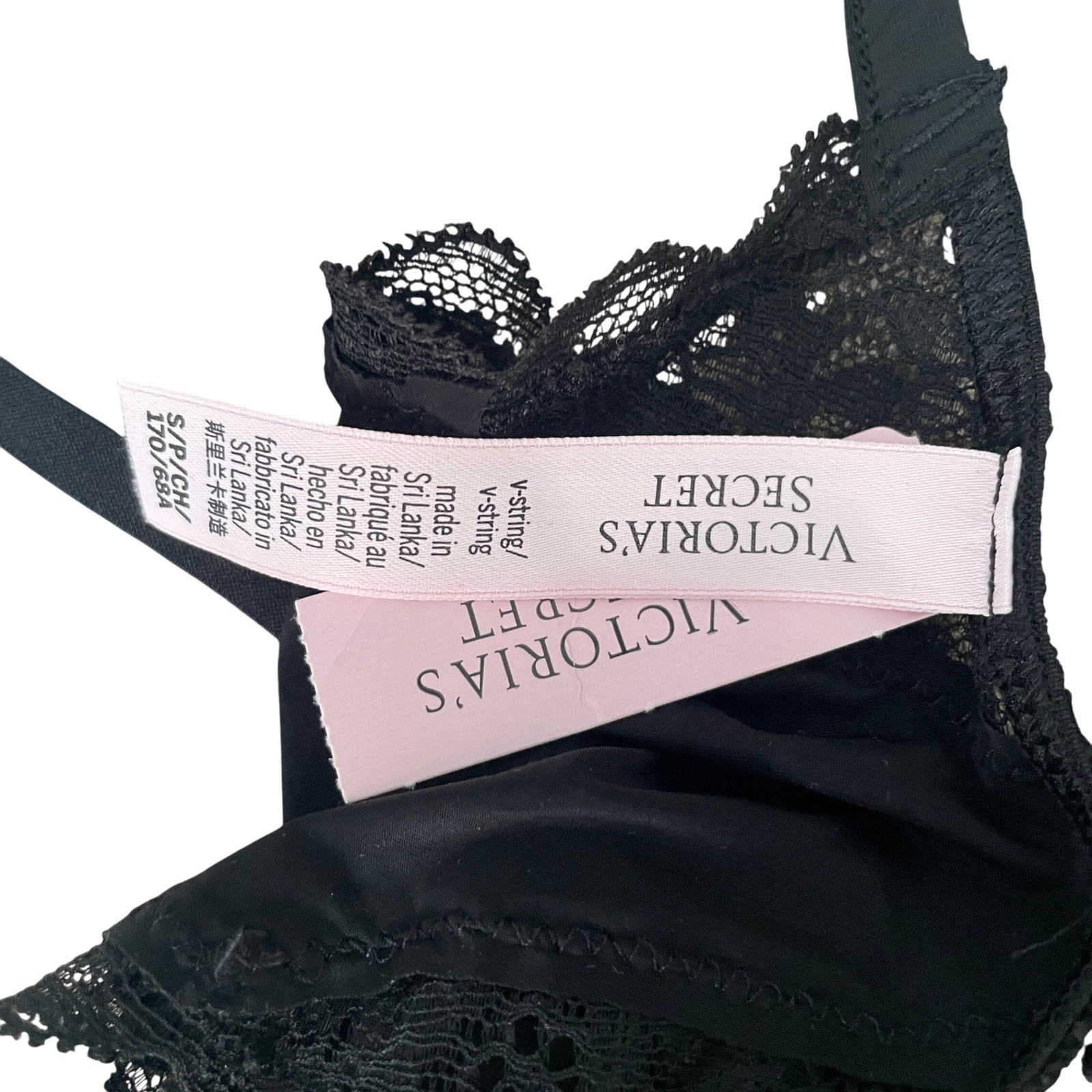 как выглядит Victorias Secret Dream Angels V-String Thong Panty sz Small Black Lace Trim Bow фото