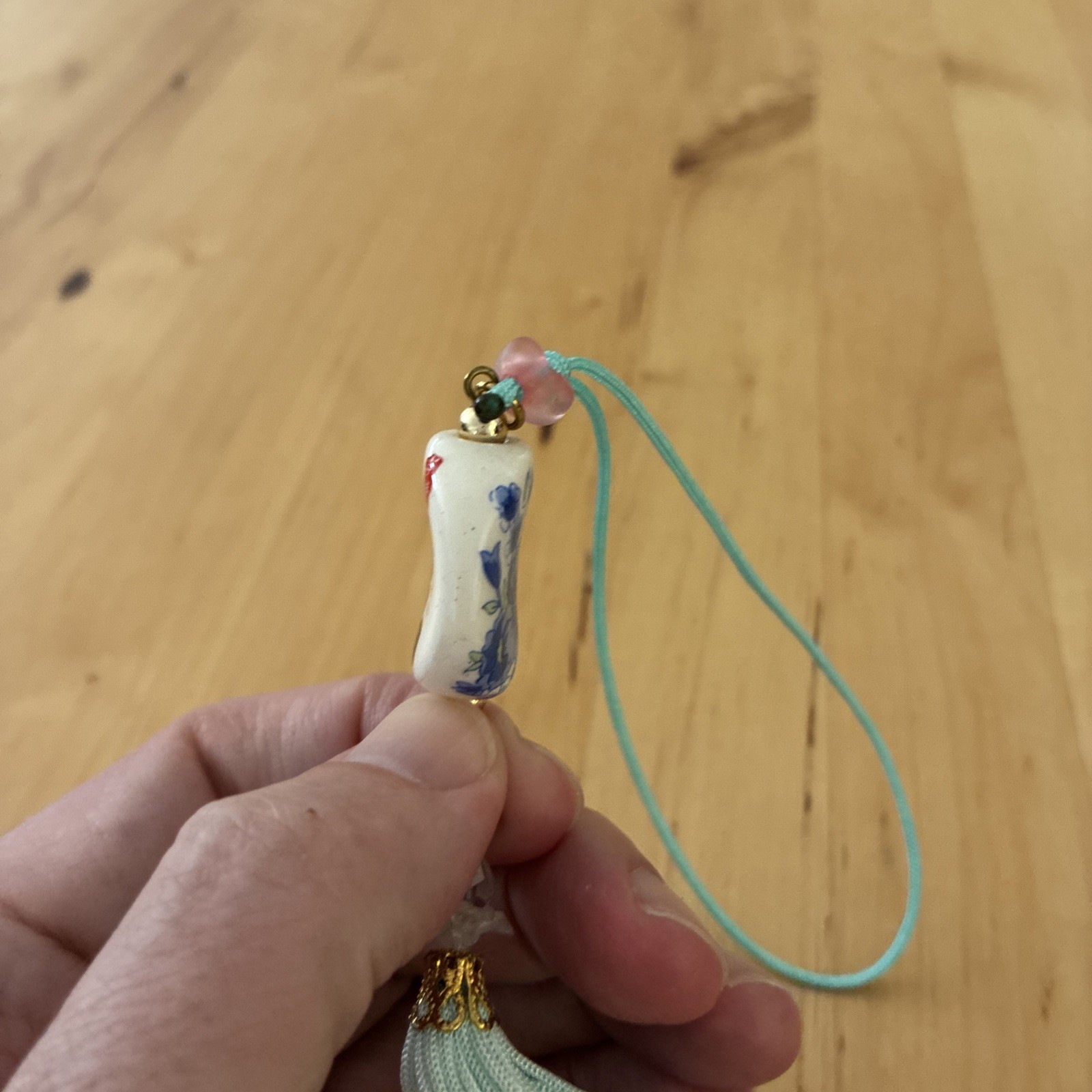 как выглядит Hand Ceramic Floral Blessing Chinese Pendant Knotted Charm 11 фото