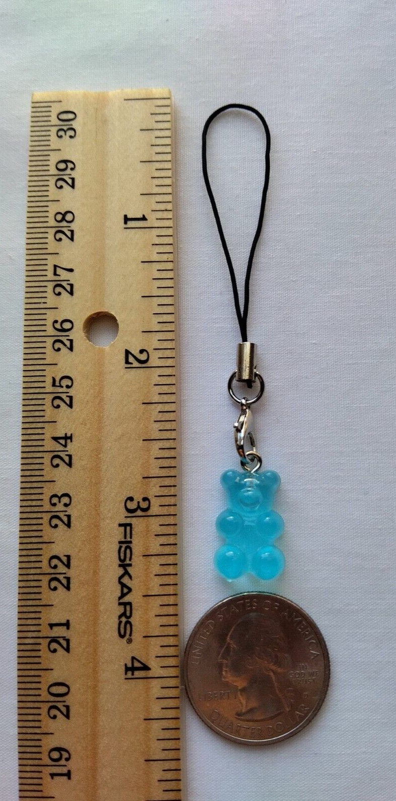 Blue Gummy Bear Phone Charm Dangle Lanyard Hang Pendant Chain Car Decor Handmade