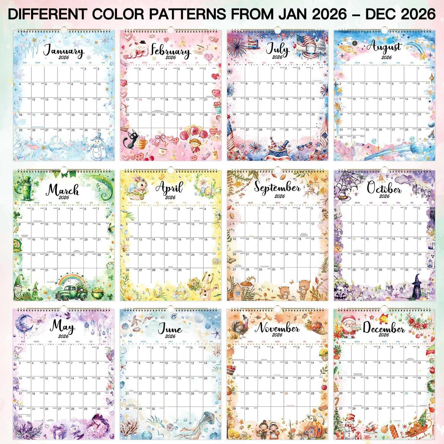 • Durable 12- 2026 Wall Calendar - Large Blank Blocks Holiday Reminders