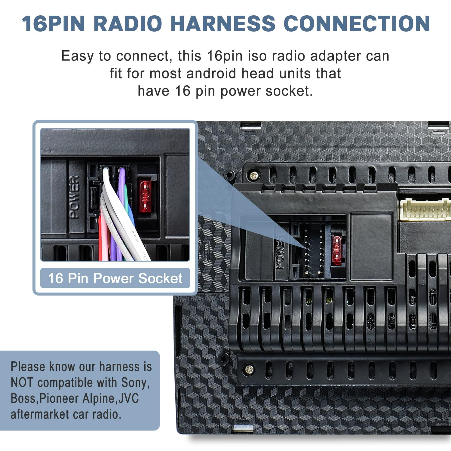 Aftermarket Car Radio Stereo Wiring Harness Adapter 16 Pin Connector Compatible
