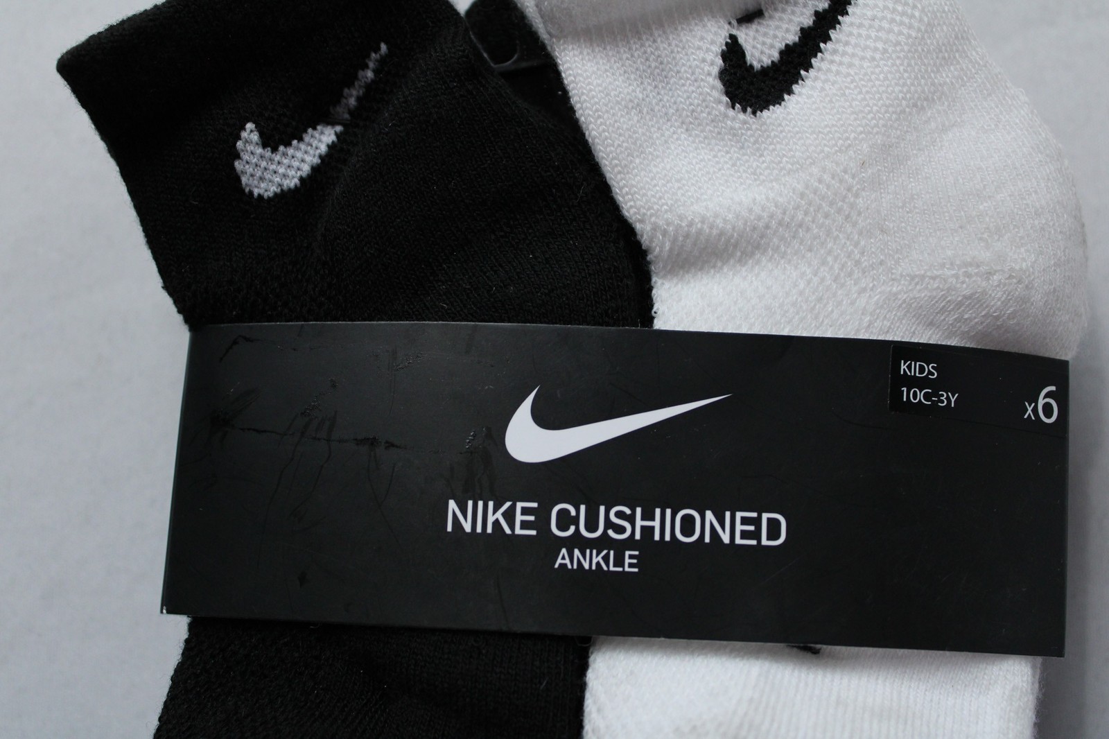 как выглядит Nike Kids Cushioned Ankle Socks 6 Pairs DH3 White/Black/Gray 10C-3Y NWT фото