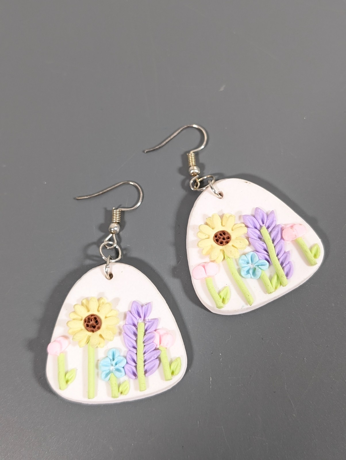Boho Spring Summer Sunflower Clay Earrings Purple Pink Yellow Dangle