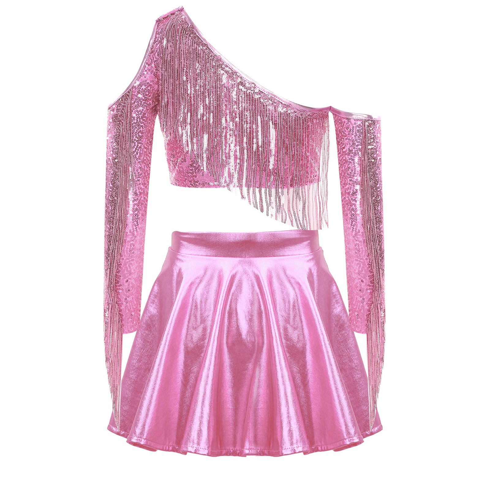 Girls Outfit Skirt Jazz Dancewear Hip Hop Set Dance 2 Pcs One Shoulder Stage