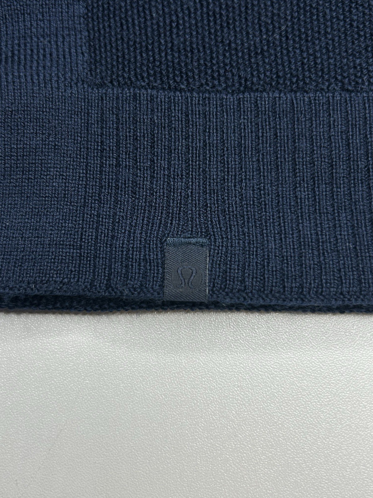 как выглядит Lululemon 100 Merino Wool Navy Knit Wrap Cardigan Sz Large Open Front Sweater фото