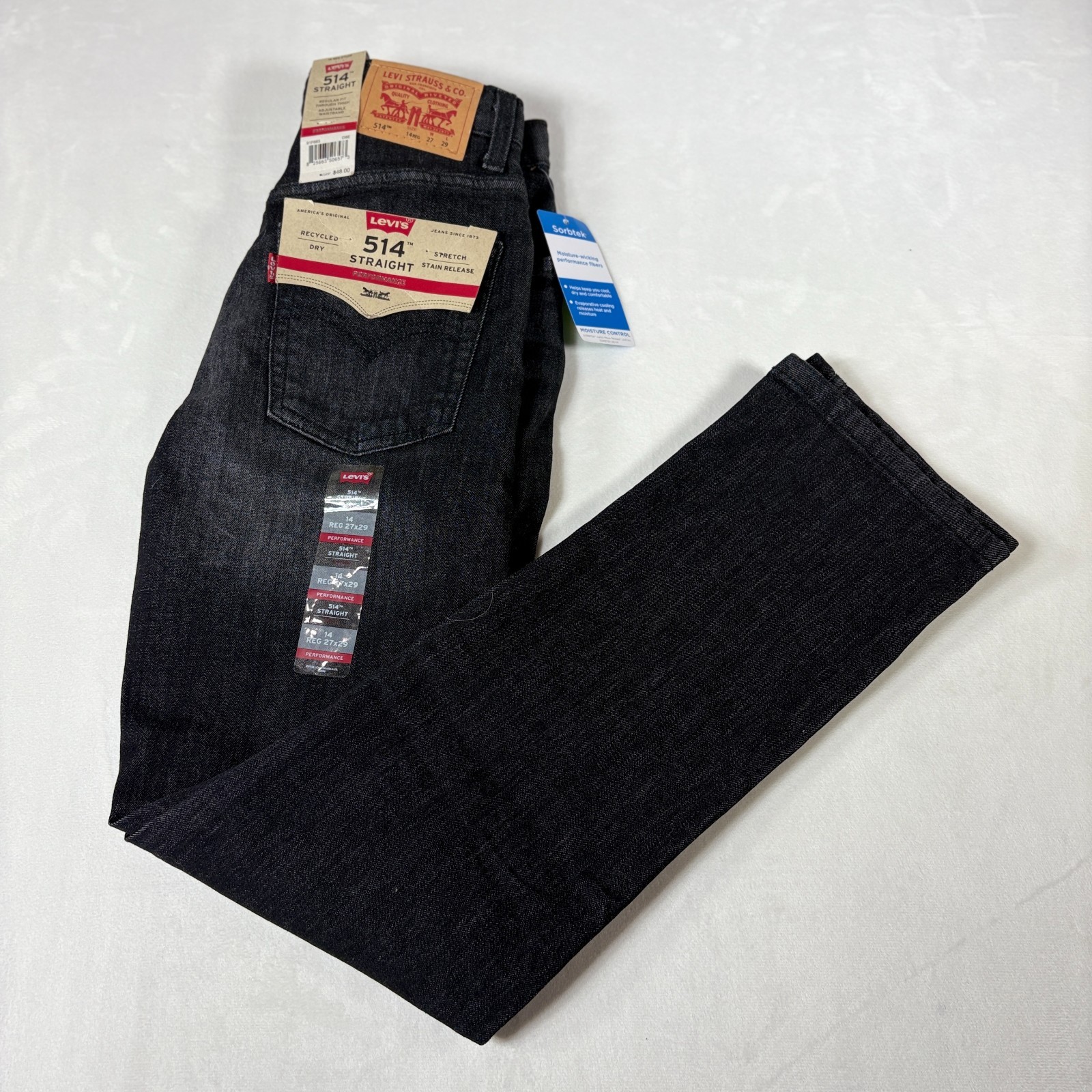 Levi's 514 Jeans Boys Size 14 Black Regular Straight Leg Performance Denim NWT