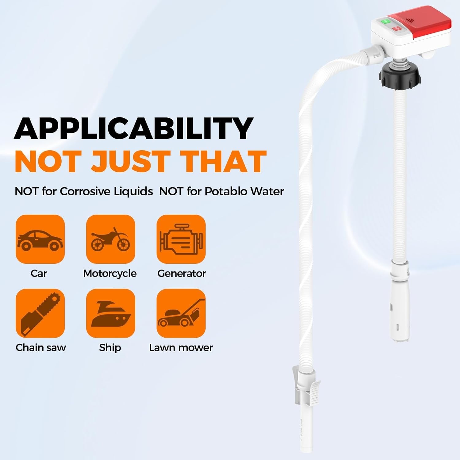 User-Friendly Portable Fuel Pump 3.2 GPM with Safety Auto-Stop and White Finish