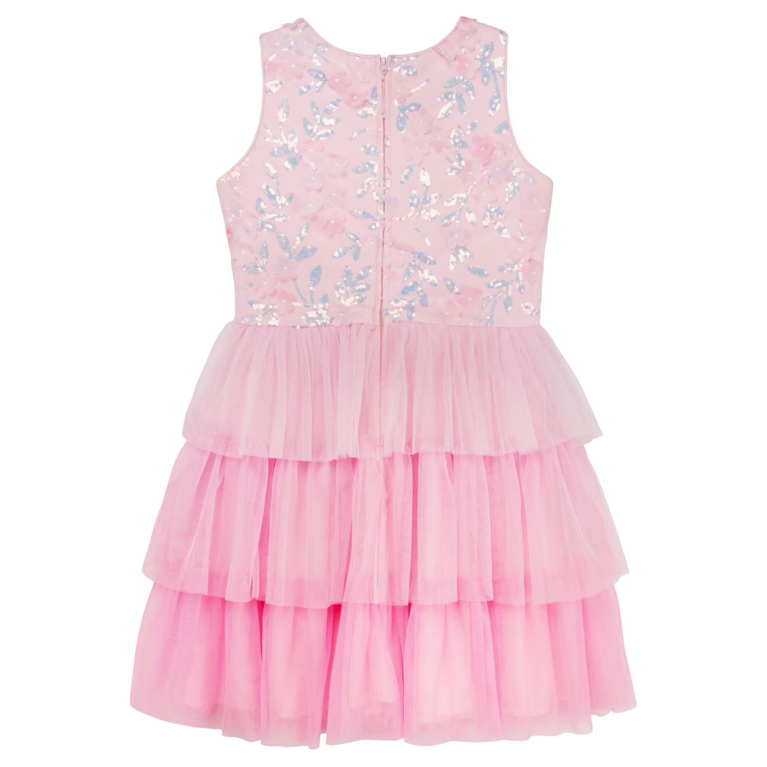 NWT Rare Editions Girls Size 4-5 Ruffle Tulle Floral Dress Sequins 3D Flowers