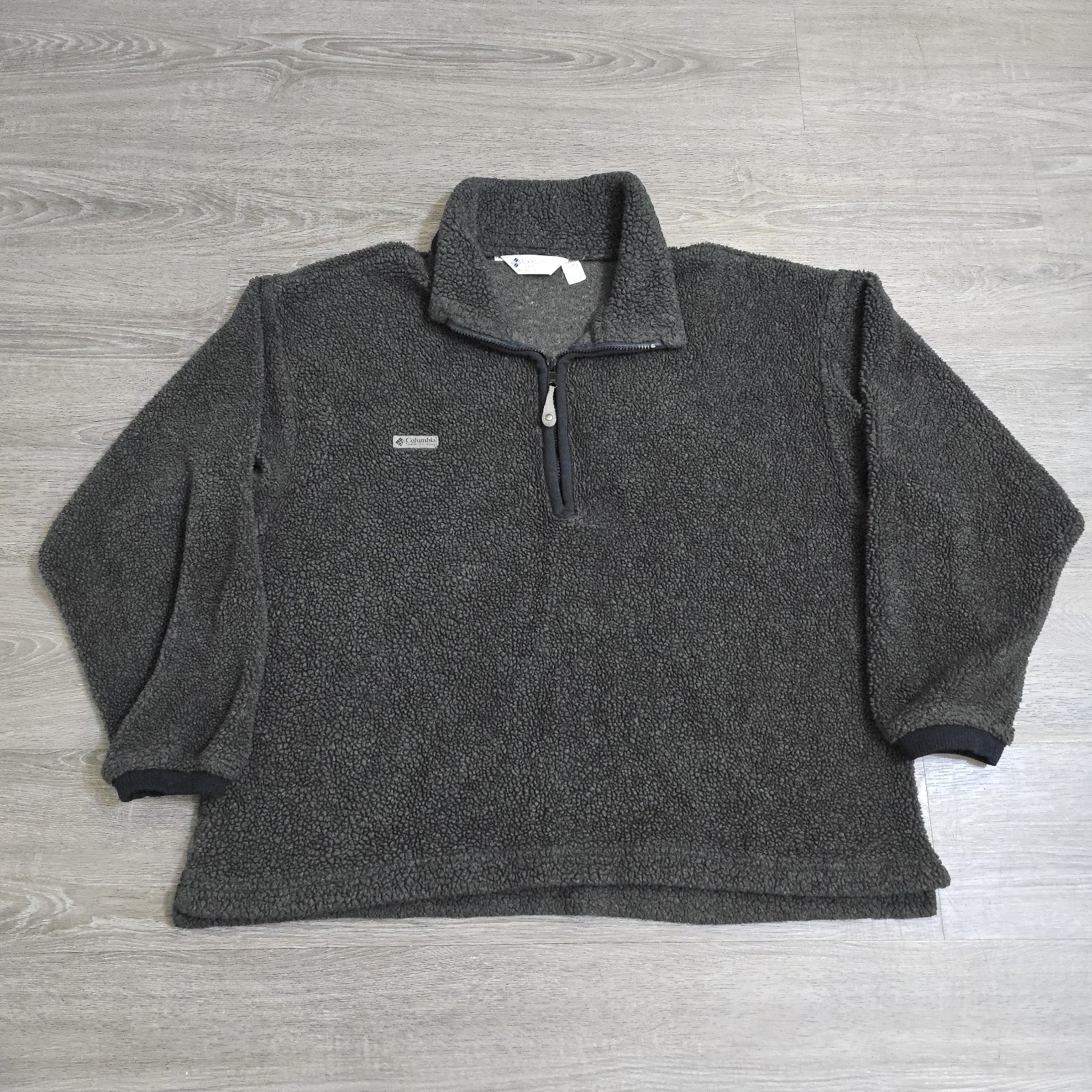 Vintage Columbia Deep Pile Sherpa Fleece 1/4 Zip Pullover Made In USA Gray SOFT
