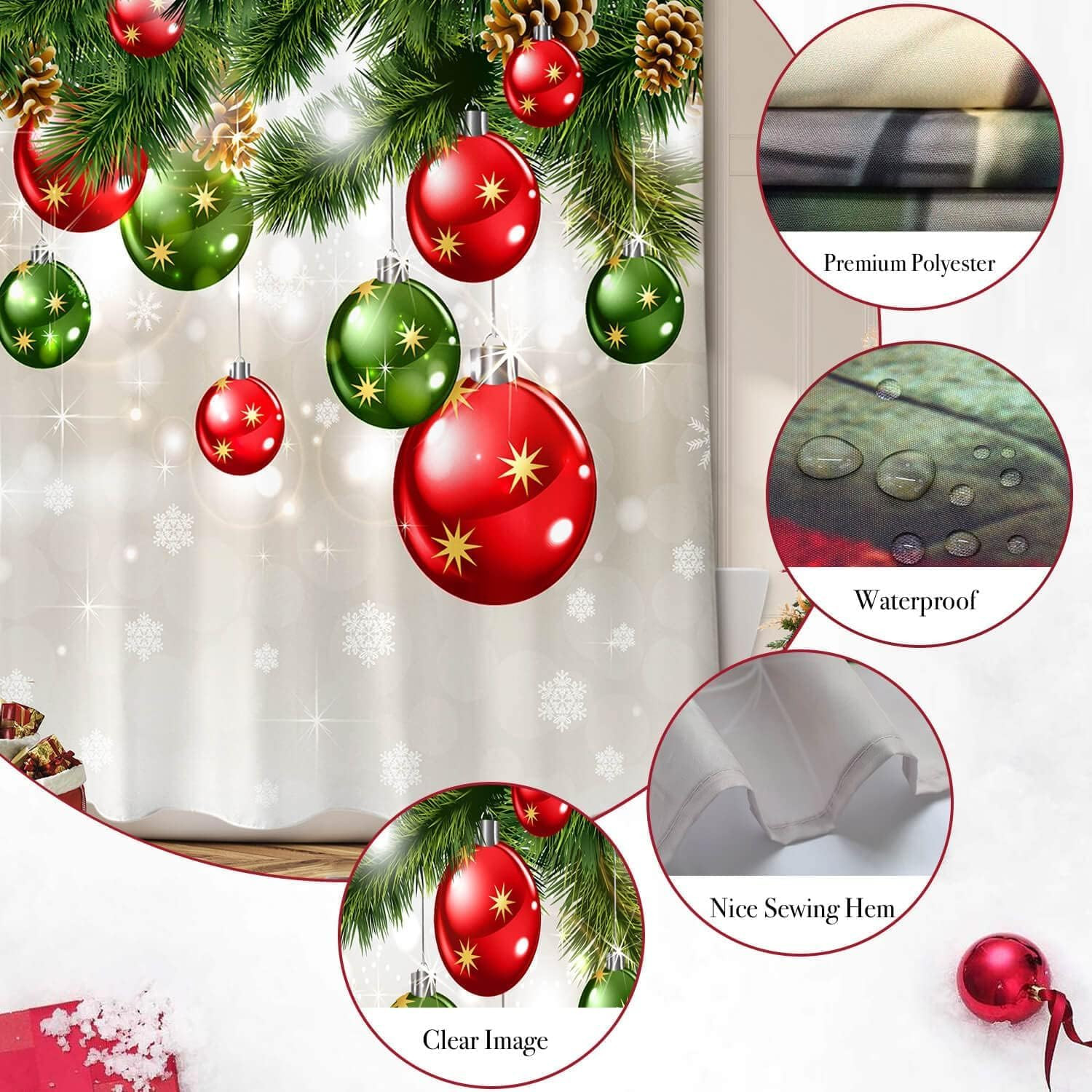 Bathroom Christmas Shower Curtain, Fabric Christmas Shower Curtain Set Green and
