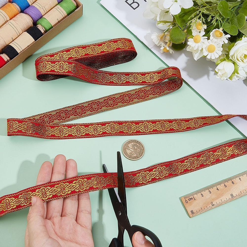 7.7 Yards Red Jacquard Ribbon with Gold Floral Trim 3/4 Sewing DIY Crafts