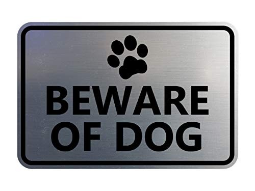 Classic Framed Beware of Dog Sign - Medium Medium 5 x 7 Brushed Silver