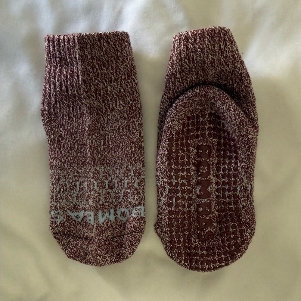 как выглядит Bombas Toddler Maroon Marled Unisex 2 Pairs of Gripper Socks NWOT 5-7.5T фото