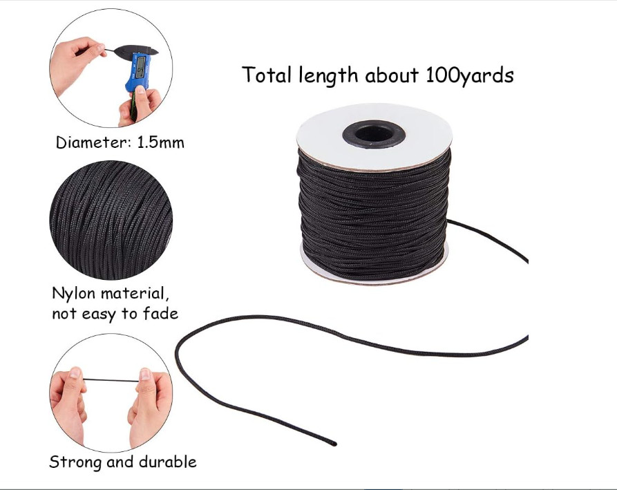 1.5mm 110 Yard Black Nylon Cord Wind Chime Cord Replacement Braided Blind String